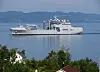 STORFINT BESØK: Det avanserte marinefartyet KNM MAUD har dei siste dagane vore på testing i nærområda til Tysnes. Måndag la dei turen nær opptil Tysnes - til ære for lokalavisa.