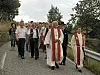 KOM LANDEVEGEN: Sokneprest Jørgen Knudsen (th) og tidlegare sokneprest i Sveio, Gunnar Salomonsen, fremst i prosesjonen frå Seløystovo til Onarheimskyrkja, der det i kveld på Olsok vart halde Olsokmesse.