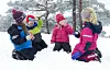 LANGT FOR SMÅ BEIN: F.v. Lilja Sofie, Selmer, Marta og Eline frå utegruppa til Stjernereiso barnehage kosa seg i snøen. (Foto: Torunn Espevik)