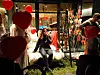 FIN STEMNING: Marianne Tvedt, sitjande framfor OnarTun, avsluttar Hjertefred med "Å kunne skrive" av Ola Bremnes. Og etterpå vart Hjertefred-ballongar i hopetal sloppe til vers.