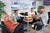 FERJEKOS: Senterpartimedlemmene koste seg med rundstykker og ferjeprat. F.v. Marit Arnstad, Kristine Kleppe, Nils T. Bjørke og Helge Hauge.