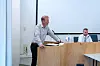 ORIENTERING: Rådmann Steinar Dalland gjekk tysdag på talarstolen i kommunestyremøtet og orienterte politikarane om status for auka grunnbemanning-prosjektet.