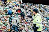 PLAST FRÅ NORGE: Fabrikksjef Michael Stechert ved Vogt Plastic GmbH utanfor Berlin inspiserer ballar med plastavfall frå Norge. Blant handleposar, shampoflasker og salami-emballasje finst trillebårhjul og anna som ikkje har noko å gjera på eit resirkuleringsanlegg for plast. (Foto: Nico Schmidt/Investigate Europe)