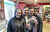 NØGDE KUNDAR: F.v. Pinky Yamson, Jasmin Yamson og Mariche Yamson Thuen stakk innom butikken for å kjøpa blomar, og fekk kake med på kjøpet.