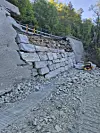 NY MUR: Bruntveit Maskin er godt i gang med muringsarbeidet der vegen rasa ut ved Holma i slutten av januar i år. Biletet er tatt på fredag. Roger Lemme Murar opp att under vegen Randi Kleppe Randi Kleppe Publisert 19.05.2025 - 13:21 Sist oppdatert 19.05.2025 - 15:12 nyhende