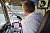 AUTOMATISK OVERFART: Kaptein Espen Haukanes på MF Folgefonn følgjer med når ferja går automatisk frå kai til kai mellom Hodnanes, Jektevik og Nordhuglo. (Foto: Wärtsilä)
