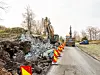 PÅ FLATRÅKER: Arbeidet med å utvida fylkesvegen frå Flatråker til Søreidsvågen er i gang. Her er sprengingsarbeidet i gang sør på innmarka på Flatråker, like ved der vegen har sige i ei årrekkje. (Foto: Ole Skaten)