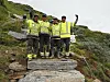 TRAPPEBYGGJARAR: Dei fire arbeidskarane frå Nepal er i full gang med å nye steintrapper, denne gongen i den bratte Gråuro. (Alle bilete: Ole Skaten)