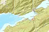 STENGT BRU: Sanddal bru på fylkesveg 121 i Fusa kommune er stengt for all trafikk, men vegvesenet håpar å få opna ei provisorisk bru i løpet av dagen. (Kartverket)