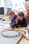 STUDERTE ORDFØRARKJEDET: Kyrre Skutlaberg Sjøbø (5) og Marie Haugland (5) likte ordførarkjedet. Foto: Camilla Korsnes