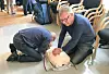 DOKKE: Her øver Leif Håvik og Jarle Myklebust på hjarte- og lungeredning. (Begge foto: Per Verner Aase) Øvde på livredning Torsdag sist veke møtte 19 engasjerte hålandsnesingar opp i grendahuset for å bli oppdaterte på førstehjelp. Publisert 18.09.2018 - 12:56 Sist oppdatert 23.05.2019 - 11:41 nyhende