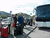 KLARE FOR AVREISE: Tysdag føremiddag var det avreise til Holland for Tysnes Reiselag sin blomstringstur. Midt i biletet ser me leiar i reiselaget, Freddy Jensen, og to av turdeltakarane Sigurd Bjordal og Leif Børge Meland.