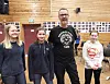 ENGASJEMENTET SMITTA: Kenneth Bruvik frå Jeger- og Fiskerforbundet engasjerte 8. klassingane (f.v.) Synne Dalland, Lillian Luth-Hanssen og Randi Færevaag Fotland.