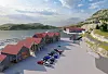 SATSAR STORT: Alsaker Fjordbruk har planane klare for nye storutbyggingar. Nærast: Det nye administrasjonsbygget som skal byggjast delvis på pelar. I bakgrunnen: Det nye postsmoltanlegget som politikarane i landbruk/teknisk sa ja til på tysdag. (Teikning frå kommunale sakspapir)