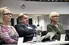 SAT ROLEG: Sjølv om Kjetil Hestad (Ap) var på talarstolen opp til fleire gonger for å kritisera Kystsoneplanen, sat han roleg saman med Gro Berge (Ap) (t.v.) og Gunn Berit Lunde Aarvik (Ap) på bakerste benk, då politikarane skulle stemma over Kystsoneplanen.