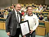 HEIDER OG ÆRE: Onsdag Patrick Russell Madsen tildelt medalje for redningsdåd til sjøs av fylkesmann i Hordaland Lars Sponheim. (Foto: Terje Rudi, HSH)