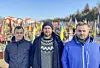 BESØKTE UKRAINA: Kåre Martin Kleppe (t.h.), Sigvard Madsen (i midten) og tidlegare Austevoll-ordførar Morten Storebø var blant gruppa som deltok på Fritt Ukraina sin tur i sist veke til Ukraina med bilar og anna utstyr til frontlinja. Her er dei ved minnelunden Field of Mars. (Foto: Privat)