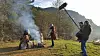SPELAR: Megan Leo, Toril Nikolaisen Kilde, Brenda Runahild Dahl og Bjørn Dahl gjennomfører blotet. Foto: Gøril Grov Sørdal.