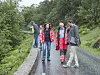 PÅ SYNFARING I SOMMAR: F.v. Eva Sundal og Leif Arne Aas frå vegvesenet i drøftingar med Morten Anthonessen, som har hatt ansvaret for trafikksikringsplanen i kommunen. I bakgrunnen studerer prosjektingeniør Haakon Haaland, rådmann Steinar Dalland og einingsleiar Torfinn Kongsvik kantsikringa mot Onarheimselva.