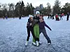 GLEDE: Besteveninnene (f.v.) Tuva Hatteberg-Olsen, Ingunn Skutlaberg-Kongsvik og Anna Haaland fekk mykje glede ut av å vera på den islagde Korsfjorden tysdag ettermiddag.