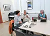 TRYGGLEIKSALARM: Irene Fauske (til venstre) var i tenesteutvalet for å fortelja om tryggleiksalarmane i open omsorg. Beate Storesætre (i midten), Anne Kristi Alfstad og resten av politikarane fekk sjå på dei ulike alarmane, og gjekk inn for ei oppgradering.