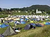CAMP: Det har ofte vore tett i tett med telt og bubilar i festivalcampen i Uggdal under Tysnesfest dei siste åra. Camp-sjef Bård Sværi meiner klart at campen ikkje er ein utprega rusarena for Tysnes-ungdom. (Arkivfoto)
