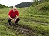 SØKKVÅTT: Ole Langeland har måtta venta lenge før han våga seg utpå bakken med slåtteutstyret.