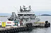 VAKTA HAMNA: Under Tysnesfest-isj var Kystvakta i kjend stil til stades for å hjelpa politiet med å passa på båttrafikken i Våge hamn. Skipet deira, KV «Tor», er her avbilda ved kaien i Våge, der dei låg frå torsdag til søndag. Foto: Erlend Skorpetveit Aga.