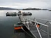 SEPTEMBER 2025: Utvalsleiar Geir K. Tvedt og utvalsmedlem Magne Storesætre på flytebryggja i samband med ei synfaring på Hovlandsstrando. (Foto frå synfaringa: Ole Skaten)