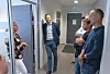 TYSNES-TUR: Måndag var stortingsrepresentant Sivert Bjørnstad (i midten) på besøk på Tysnes, og fekk mellom anna ei omvising på omsorgssenteret. Her er han, lokallagsleiar Magnar Solheim (til høgre) og resten av FrP-representantane i prat med open omsorg-leiar Birthe Tveit.