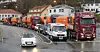 Åtte livbåtar frå Harding i Ølve transportert med trailarar over ferjekaien i Våge er ikkje kvardagskost.