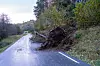 ROTVELT: Denne store furua enda opp i vegen i Uggdalsdalen, men det er passasje på staden. Randi Kleppe Straumbrot og stengde vegar Laurdag morgon bles det framleis godt, og nesten 900 kundar på Tysnes var utan straum i sjutida. Randi Kleppe Randi Kleppe Publisert 04.10.2025 - 09:48 nyhende vêr
