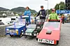 BRØR: F.v. brørne Henrik, Jens Fredrik og Didrik Sylvester Jensen deltok alle på kassabilløpet fredag. Her står dei med bilane deira "Henrik Rover", "Mr. Jenset" og "Mr. Didrik" som dei har laga sjølv, med god hjelp frå far, farfar og ein ven av faren.