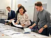 SPENTE: Sorteringa av fylkestingslistene frå førehandsrøystinga er i gang. Deretter skal listene teljast opp. F.v. ordførar Kåre Martin Kleppe, rådmann Steinar Dalland, formannskapsmedlem Anne Merete Fjeldstad og assisterande rådmann Tommy-René Stordal.