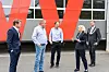 PRAT: Justisminister Monica Mæland og stortingsrepresentant Peter Christian Frølich (t.v.) møtte måndag Windsor-sjef Ove Rosvold (nr. 2 frå venstre) og Vågen-sjef Børge Pedersen (i midten). Ordførar Kåre Martin Kleppe (t.h.) var òg til stades.