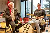 VILLE MØTA FOLKET: I to timar sat Gjermund Lygre Kongsvik og Stine Holum Gjersvik i Tysnes SV på OnarTun for å møta innbyggjarane.