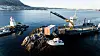 LØFTET: Her blir overnattings-containeren til Eirik Kalve flytta ut på Presteskjæret. (Dronefoto: Øystein Vaage/Video over: Tysnesfest)