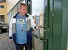 KRITISK: Kroppøvingslærar Helge Olav Instøy er kritisk til at denne utedøra til hallen stod open og ulåst i to døger etter eit forsøk på innbrot siste helga i oktober.