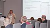 UTSETTE SAKA: Det vart inga avgjerd i ferjesaka i fylkesutvalet i dag, fredag. Her er det Målfrid Vik Sønstabø i Skyss som pratar til politikarane under møtet. (Foto: Hordaland fylkeskommune)