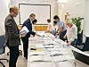 OPPTELJING: Dei lokale stemmesetlane har blitt talde opp på rådhuset i løpet av måndagsettermiddag og -kveld. (Foto: Ole Skaten)