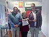 BLIDE: Kjetil Hestad vitja sommarleiren for vaksne med utviklingshemming på Halsnøy sist veke. Her er han saman med Johanne G. Hope og Fredrik Kleppe. Foto: Privat