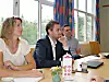 PÅ HUGLO: Representantar for Tysnes og Stord møtte Huglo bygdelag på fredag. F.v. varaordførar Kristin T. Gjerstad Kleppe, ordførar Kåre Kartin Kleppe og varaordførar i Stord, Jakob Bjelland.