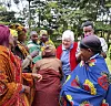 POPULÆR: Frøydis Nordbustad er populær blant dei innfødde. Så snart ho viser seg, flokkar dei seg rundt henne. Alle vil prata. (Foto: Nora Klungseth)