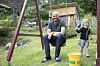 SVINGAR SEG: Gaute Epland ladar opp til ordførarvervet på hytta i Kattaneset. Niesa, Synne Epland Føyen (t.h.), er travelt oppteken med leik og moro.