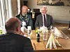 8. MAI-MARKERING: Frå veterantreffet som Tysnes kommune skipa til i 2015. På biletet ser me Jan Eric Hauge (t.v.) og Lars Mevatne, og dåverande varaordførar Bjørn Lande med ryggen til. (Arkivfoto)