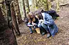 NABOAR PÅ SOPPTUR: Her har Hanne Bruntveit (t.v.) og Inger Elise Helleland funne ei bra klynge med sopp – dei fleste traktkantarellar. (Alle foto: Camilla Korsnes)