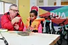 STORT UTVAL: Kva med ein fisketur i haustferien? BUA har utstyret du treng. Her får Sidona Ghirmay hjelp av Per Verner Aase i frivilligsentralen til å festa sluken i samband med ein fiskedag i fjor. (Arkivfoto)