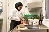 FRAMTIDIG KOKK: Ayan Abdisalan Abdullahi er ny lærling på Mandelhuset, og stortrivst så langt med den nye arbeidskvardagen.