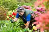 ARBEIDSJERN: Hageglade Grete Johanne Tysnes Frøyseth i kjent stil - på alle fire i eit av dei mange beda hennar. Ho klarar ikkje gå forbi ugras. (Alle foto: Camilla Korsnes)