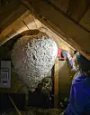 Det å ha mykje rart liggande på loftet er ikkje unormalt, men ikkje alle finn eit vepsebol på storleik med ein veldig stor heliumsballong.